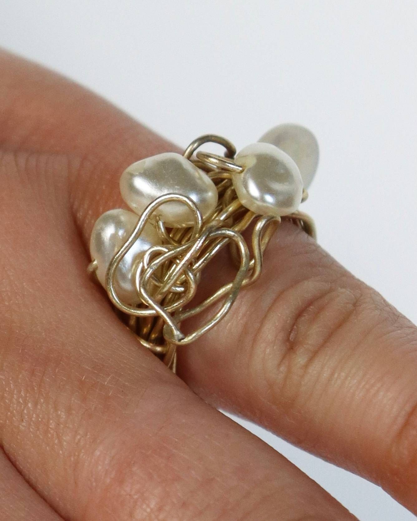 Bague réalisée en perles d'eau douce et fil de cuivre.