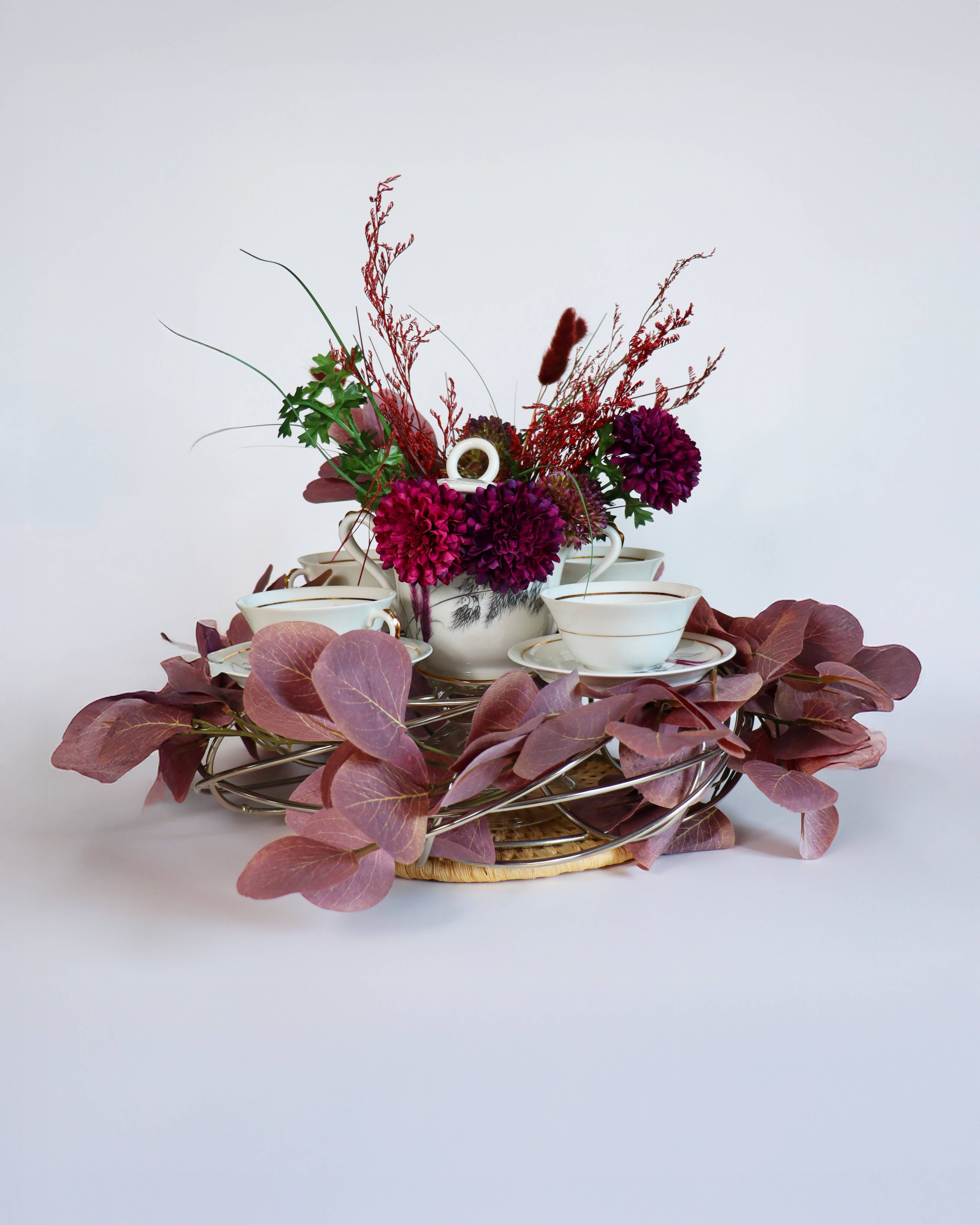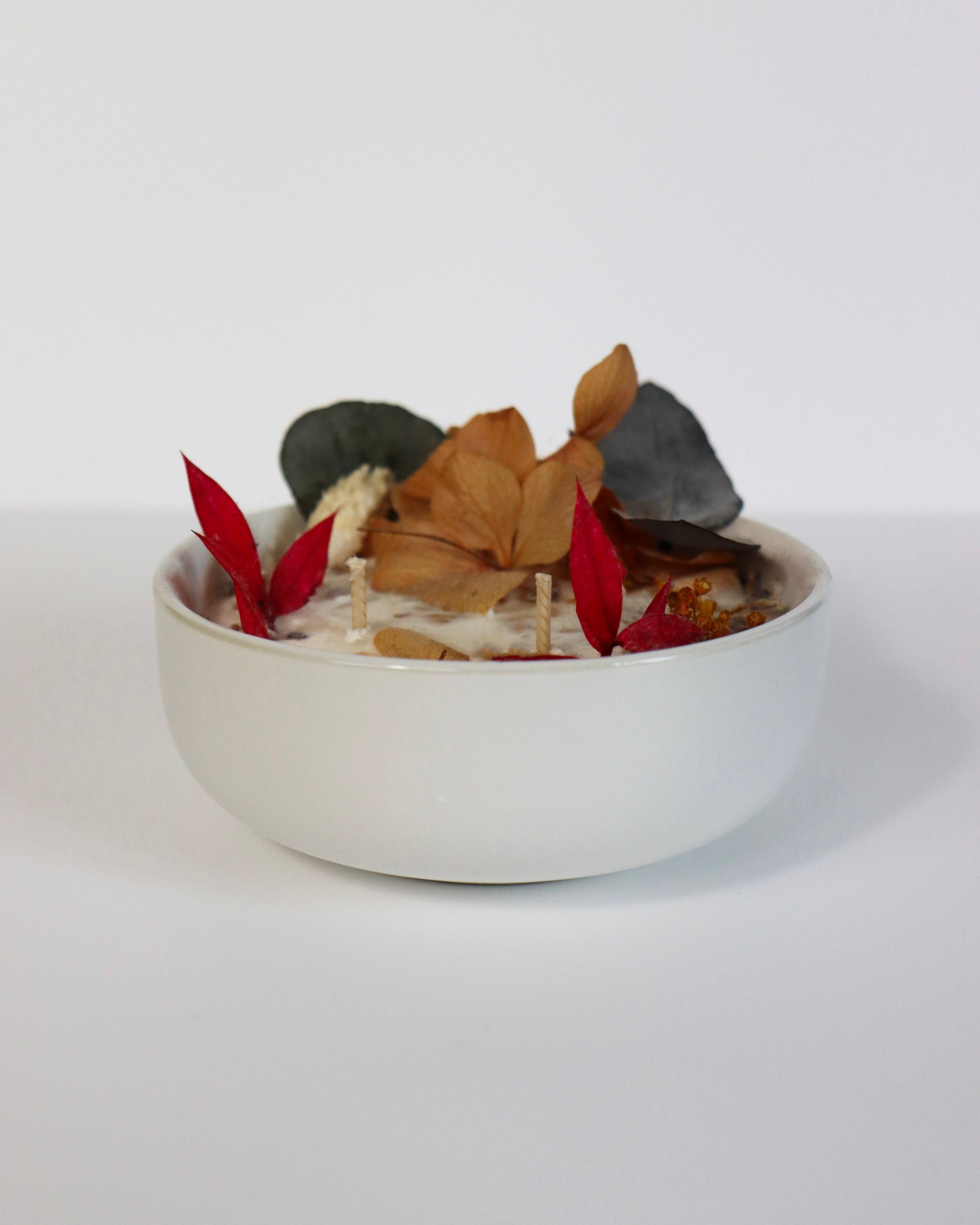 Bougie parfumée et fleurie (essence naturelle et cire végétale) dans une jolie tasse ancienne.